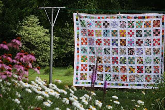 I have a softspot for scrappy nine patches. Yours is BEAUTIFUL. It makes me happy to look at it. :)